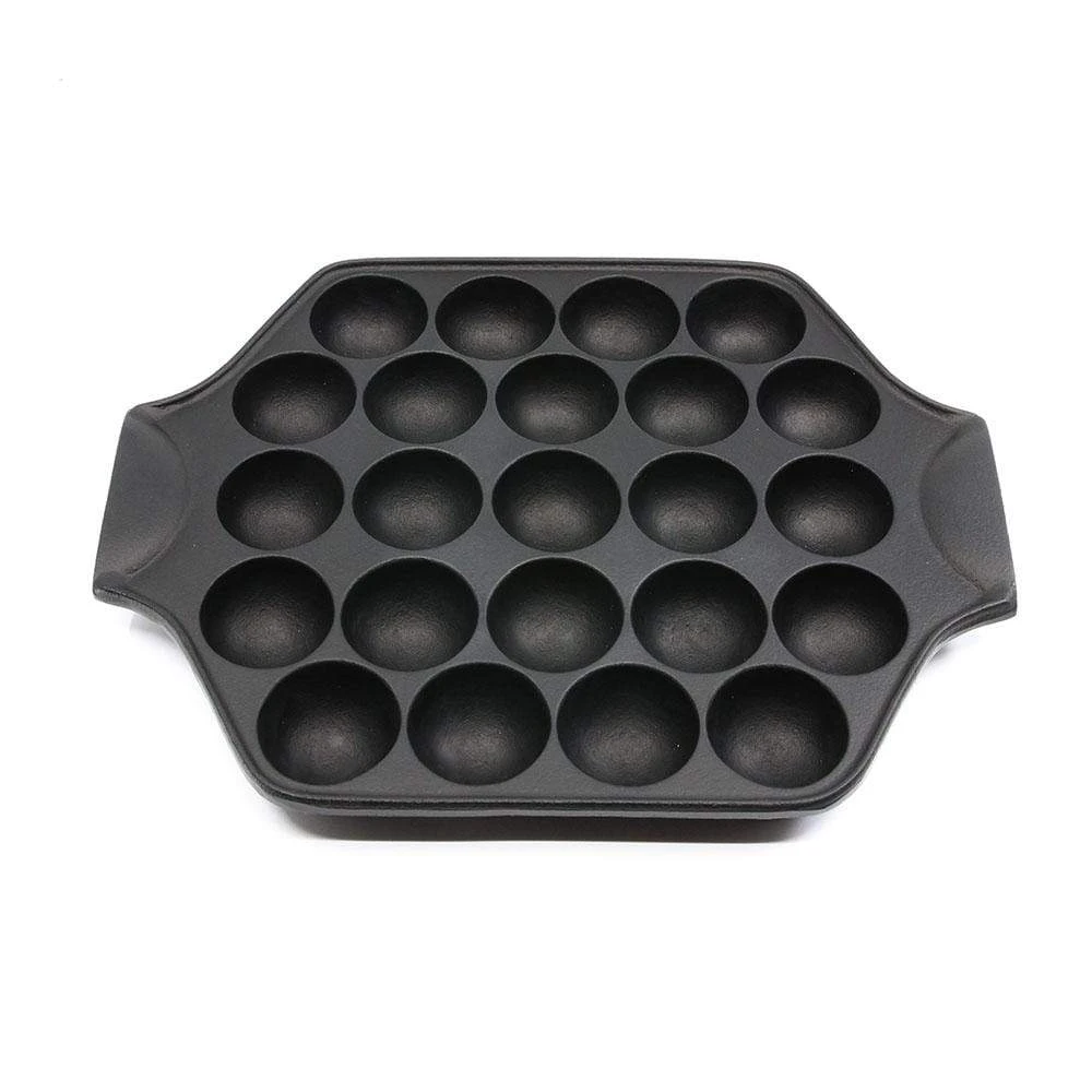 - Cast iron pan can maintain high heat and conduct the heat slowly to Takoyaki dough to make it soft and fluffy.